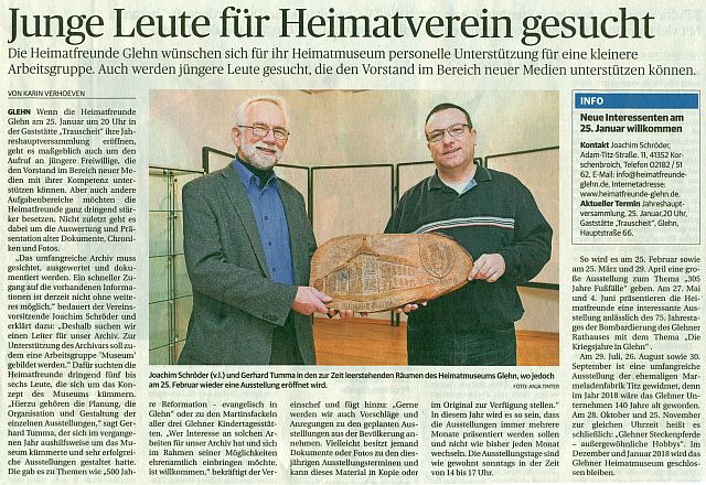 Sie sind hier: Pressestimmen - Pressestimmen 2018 - Junge Leute für Heimatverein gesucht