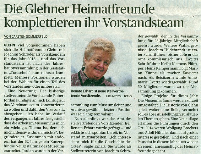 Sie sind hier: Pressestimmen - Pressestimmen 2015 - Die Glehner Heimatfreunde komplettieren ihr Vorstandsteam